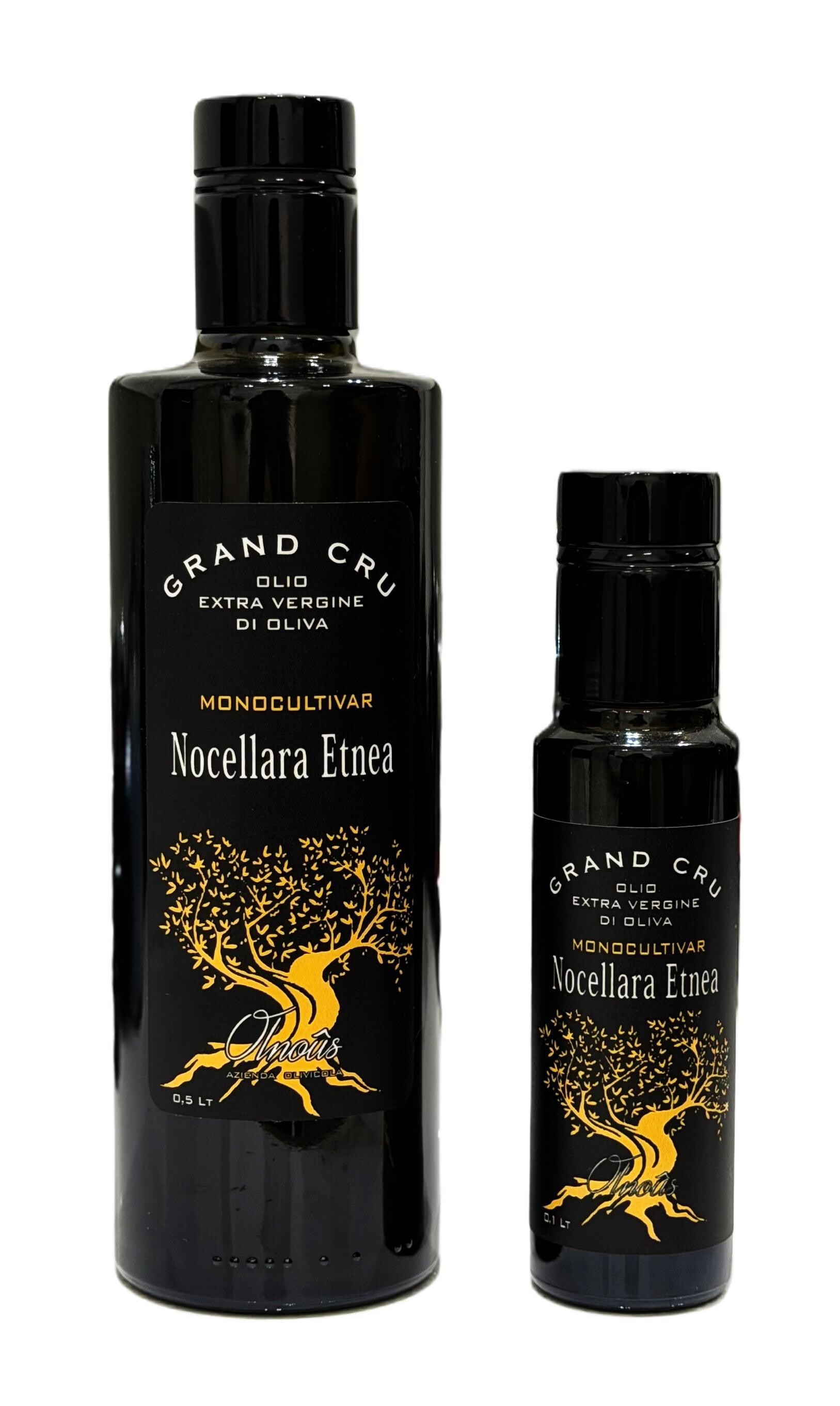 Gran Cru Monocultivar Nocellara Etnea è prodotto con olive provenienti da un unico terreno, nel comune di Biancavilla in contrada Tabana un territorio vocato per l'olivicoltura a Sud-Ovest del vulcano Etna, a 350 m s.l.m. in un terroir molto particolare, con un terreno di medio impasto, misto tra lavico e alluvionale, con la rarità di trovarsi nel letto di un antico fiume con una base ricca di calcare, gli olivi di Olnoûs danno un'eccellenza un Olio Gran Cru con note di fruttato, amaro e piccante che caratterizzano l'unicità delle stesso.